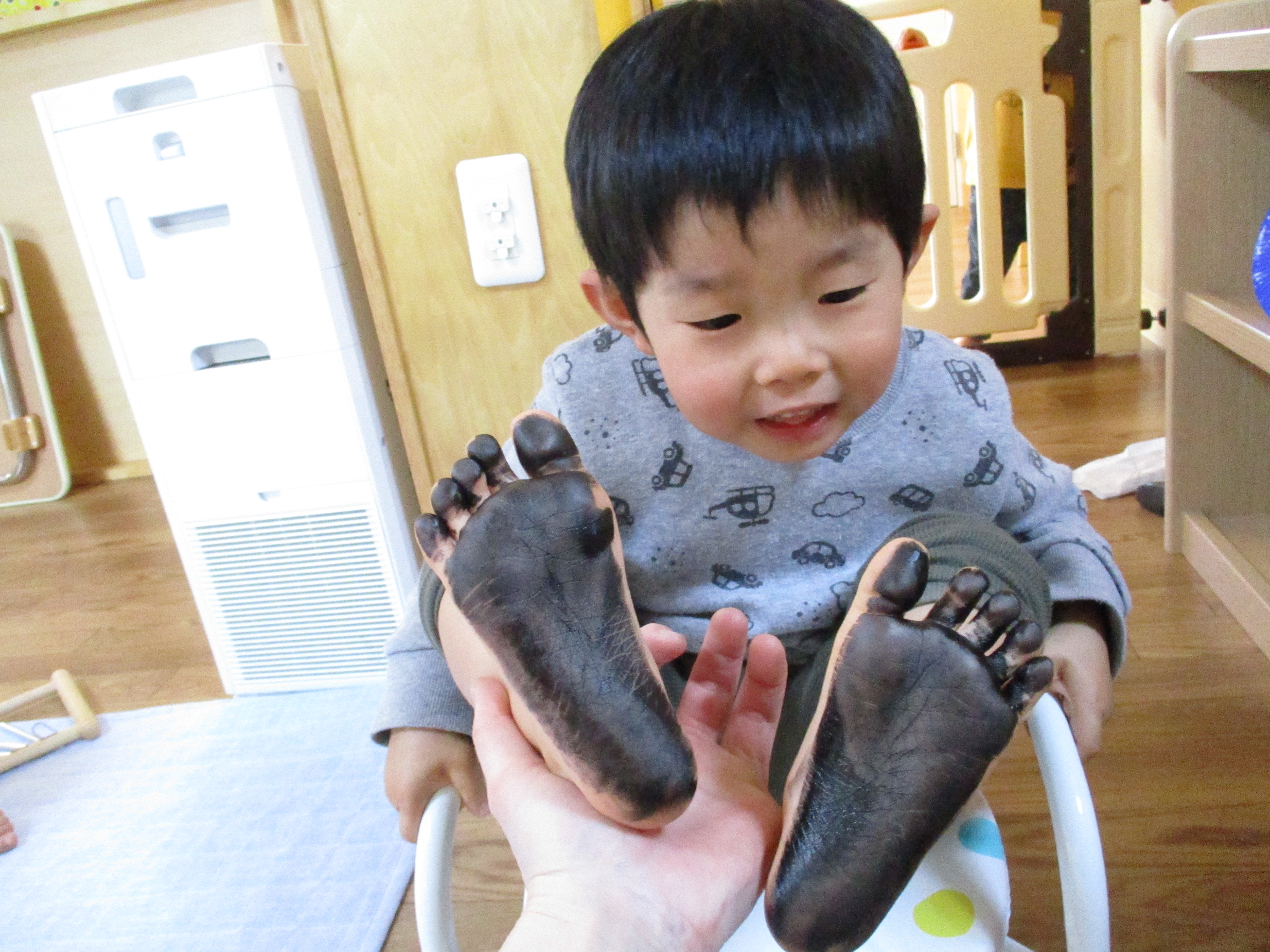 真っ黒になった足を見てびっくりした後に、良い笑顔も見せてくれました☺