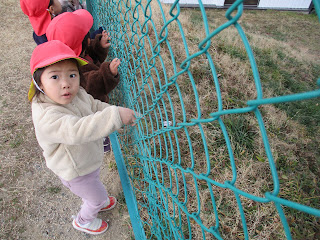 前半は室内あそびを楽しみ、後半は気分転換に少しだけ園周辺をお散歩しました。